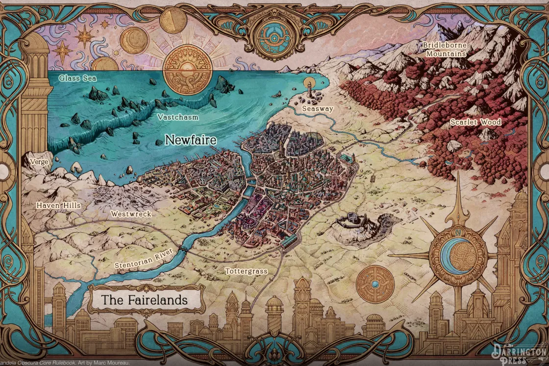 - Over 90 pages detailing the turn of the century-inspired setting of the Fairelands, and in detail the city of Newfaire and the ancient ruins beneath known as Oldfaire.
