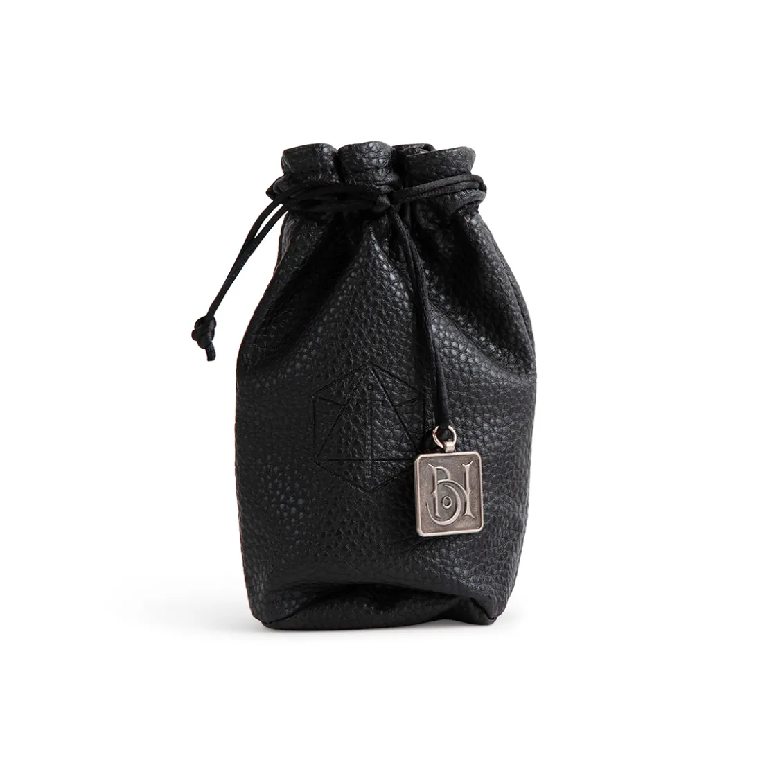 - Dice set arrives in a black synthetic (polyurethane) leather bag with a debossed Critical Role logo, drawstrings, and purple nylon lining.