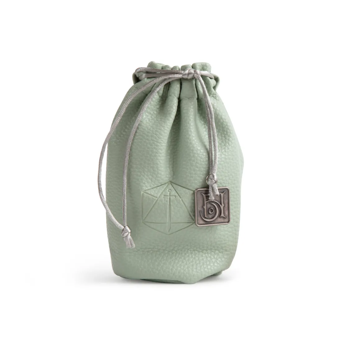 - Dice set arrives in a pale green synthetic (polyurethane) leather bag with a debossed Critical Role logo, drawstrings, and pink nylon lining.