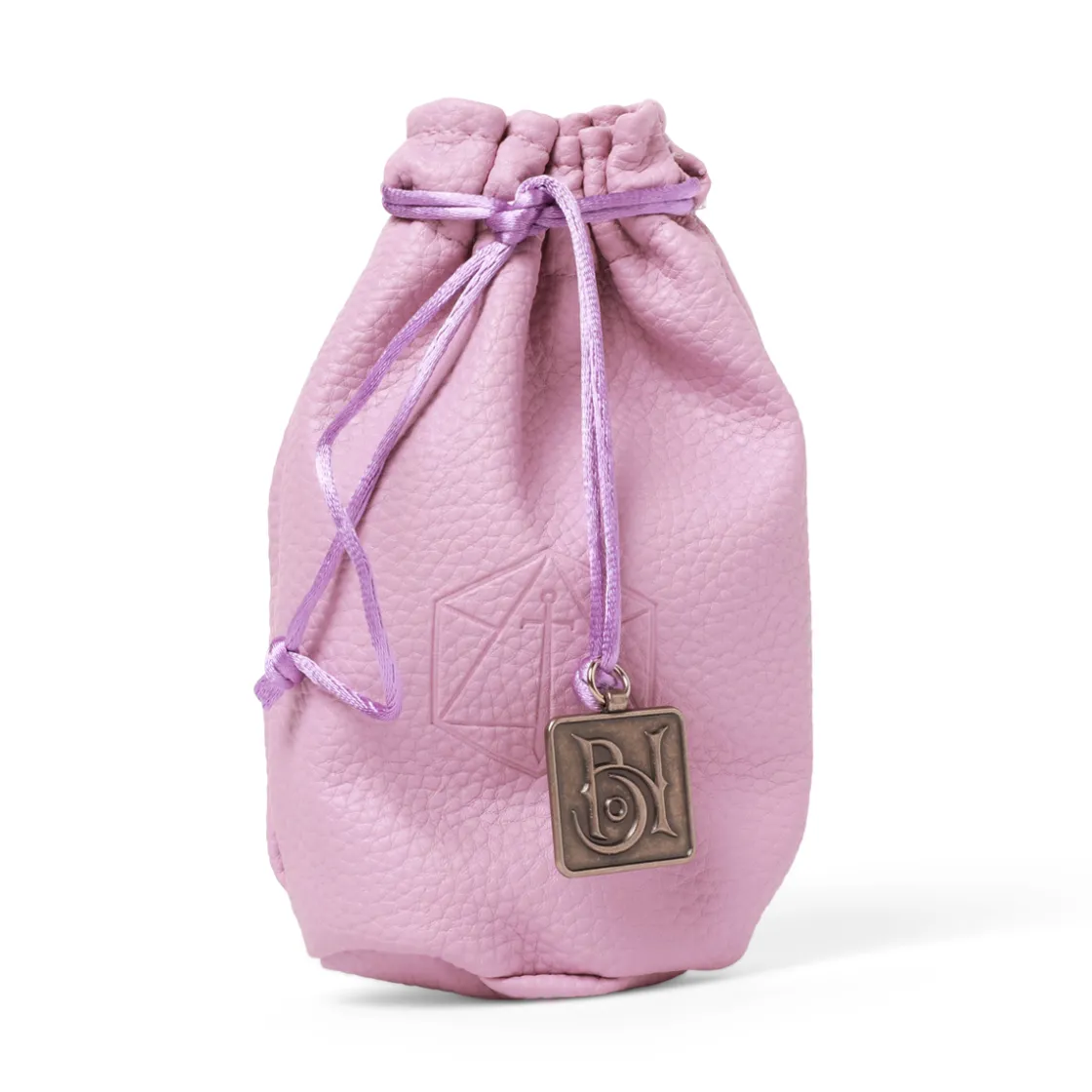 - Dice set arrives in a lavender synthetic (polyurethane) leather bag with a debossed Critical Role logo, drawstrings, and purple nylon lining.