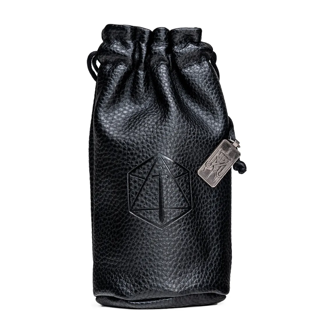 - Dice set arrives in a black PU leather bag with a debossed Critical Role logo and silver satin lining and black drawstrings.