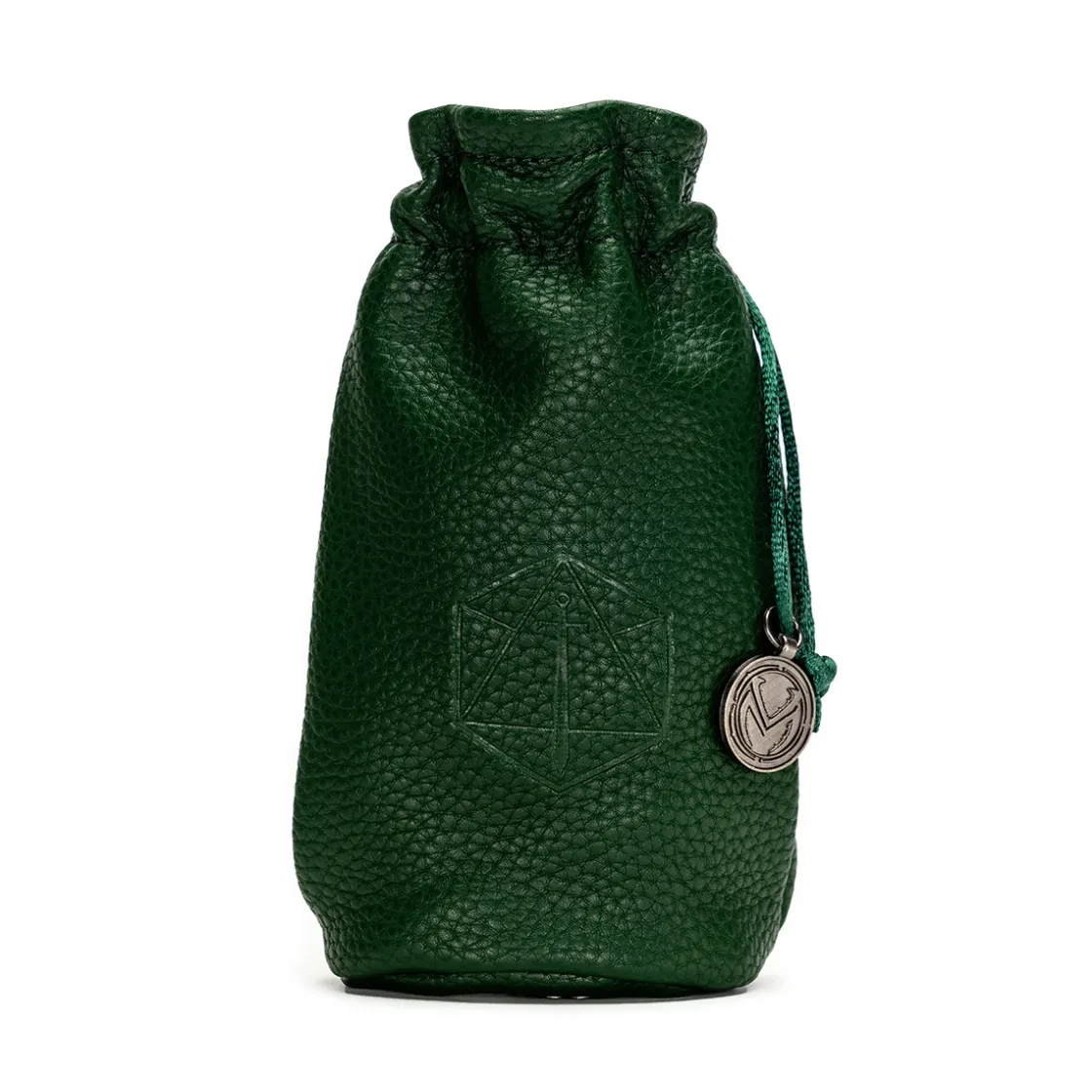 - Dice set arrives in a forest green PU leather drawstring bag with a debossed Critical Role logo and light green satin lining.