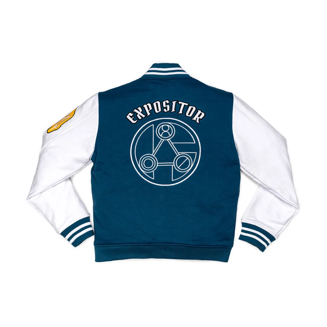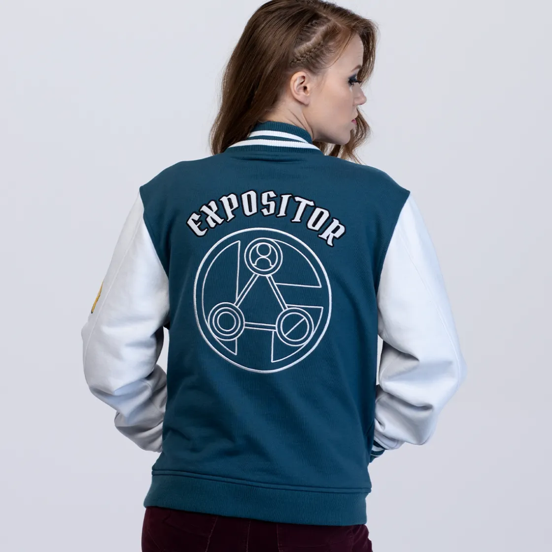 Join the rank of Expositor with our varsity jacket, inspired by the Cobalt Soul’s best and brightest connector-of-dots — Beauregard Lionett.