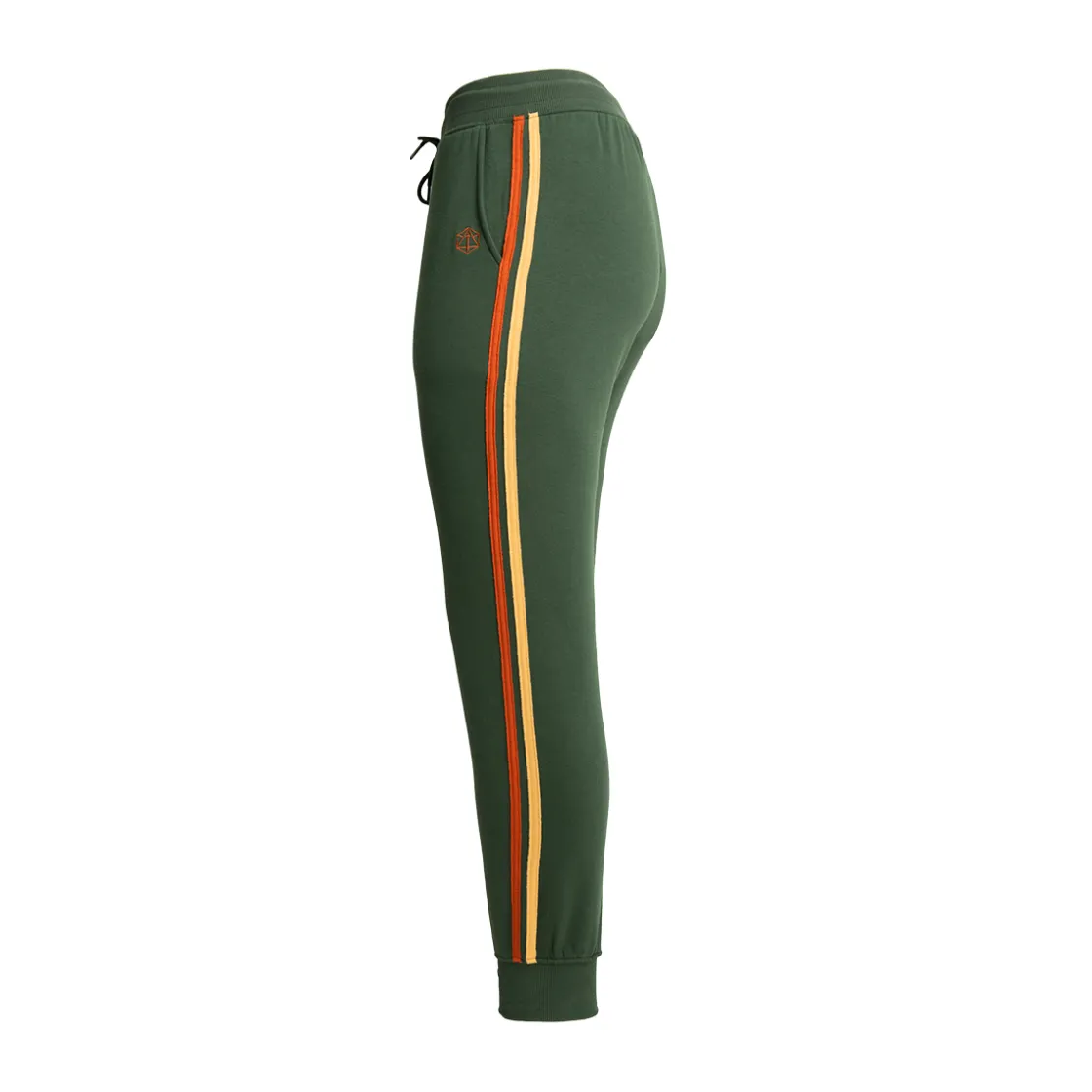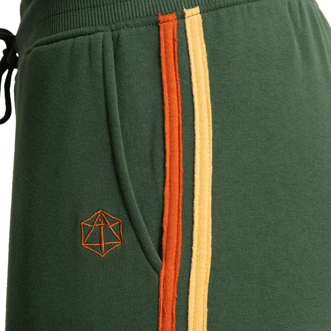 For the Critter heading to a con, out running errands, or lounging at home – the Critical Role Green Retro Jogger will have you doing it all in style and comfort. These super cozy pants are forest green and feature orange and yellow raw edged stitched stripes on the outer side of each leg. With a casually versatile look, the jogger offers a secure fit with the easy-to-tie front drawstrings, plenty of room in the the slash side pockets for your keys or trinkets, and pair quite nicely with the Critical Role Green Retro Hoodie (or your favorite sweaters, t-shirts, and tanks).