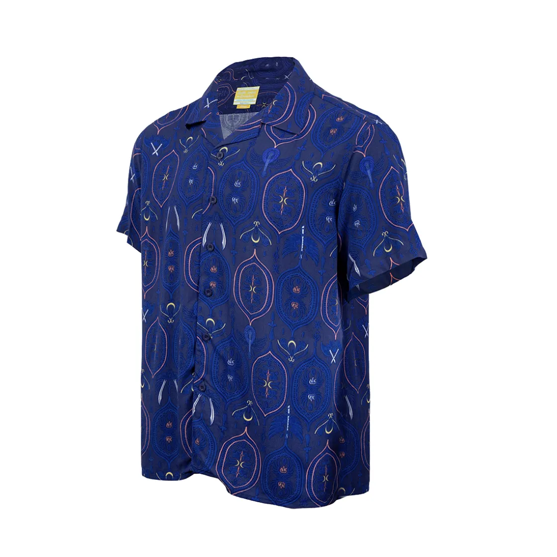 May your wardrobe find strength and stay steadfast with the addition of this fetchingly sharp camp shirt created in admiration of the one and only Dorian Storm. Inspired by the cool color pattern of his signature attire, the lightweight, unisex, button down shirt is patterned with a charming design representative of Dorian Storm’s inquisitive and charismatic personality.