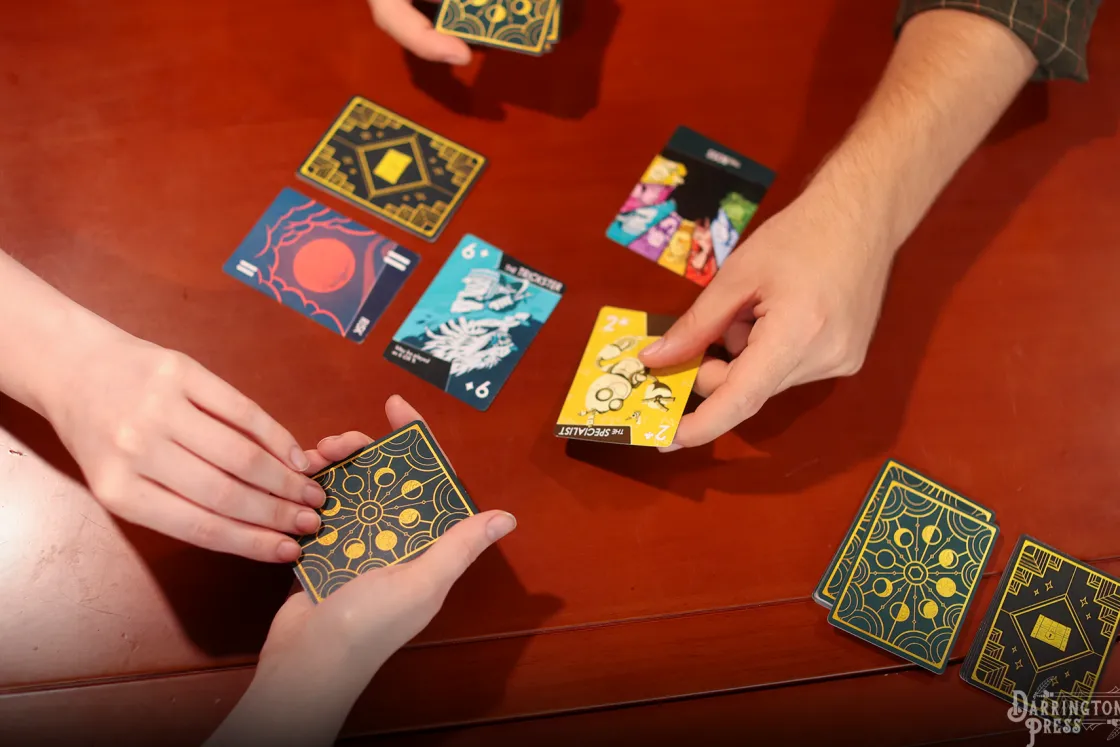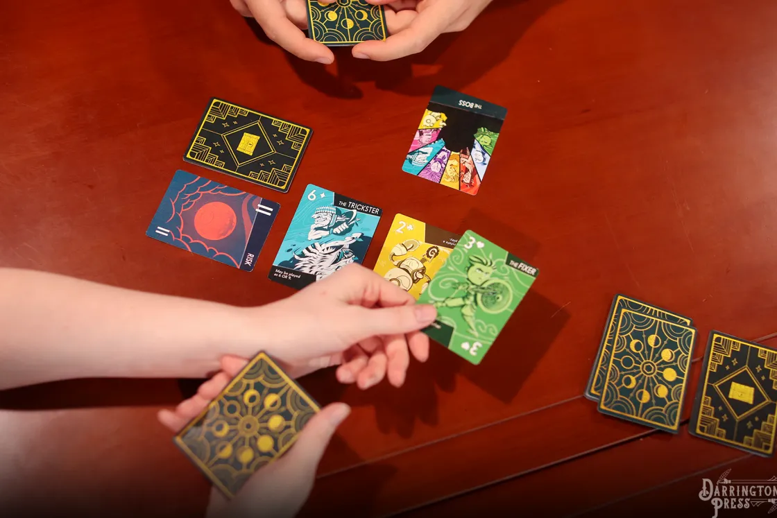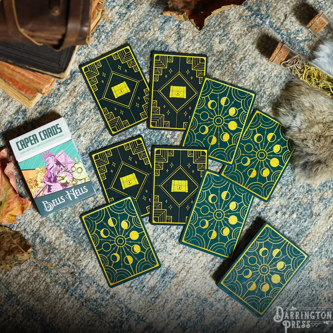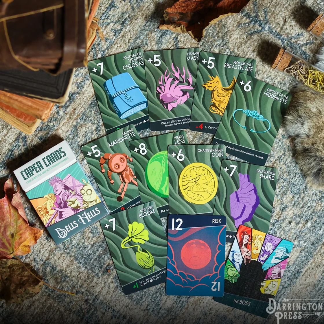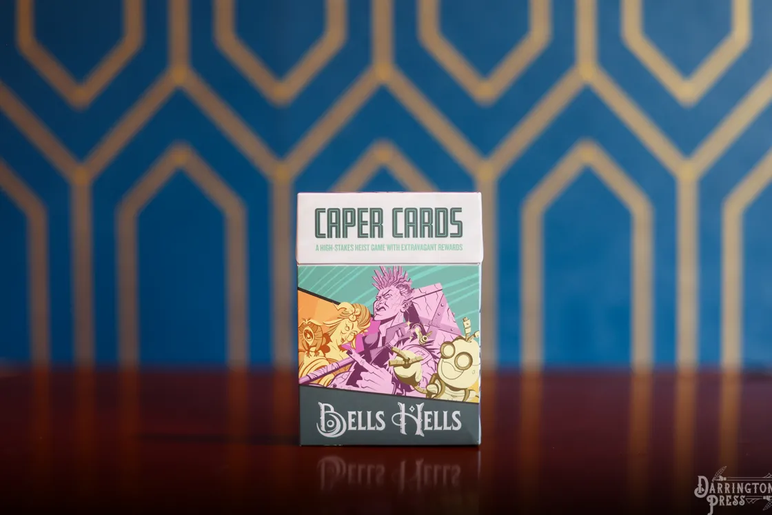 The stakes are high and the game is quick! Bring together the adventuring party of Campaign 3, Bells Hells, in this super fun blackjack-style game of strategy and cooperation from Darrington Press. Try your hand, solo or as a team, in an attempt to exceed the value of the treasure you’re pursuing without going over 21. With gorgeous illustrations of the Bells Hells characters, each crew card bears a numerical value and ability, such as Chetney Pock O’ Pea being played as a 6 or 9. Whether you’re playing in solo mode or with up to 4 friends, ready those math skills and sharpen your wits to take on the heist of your life!