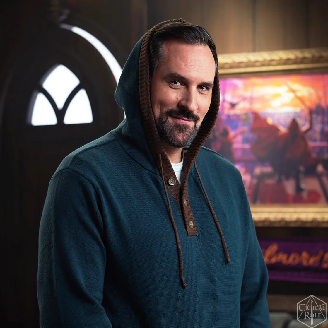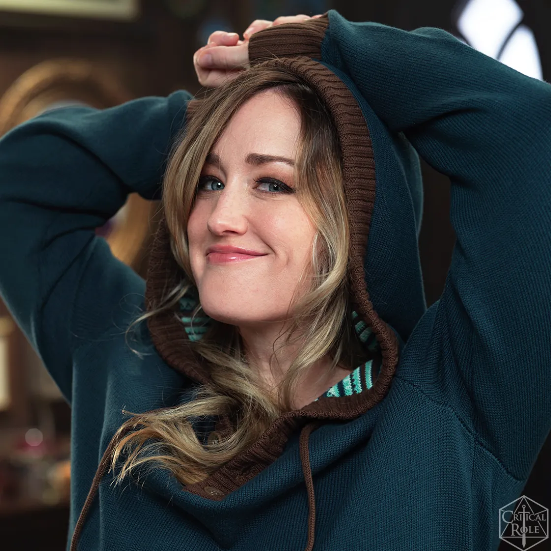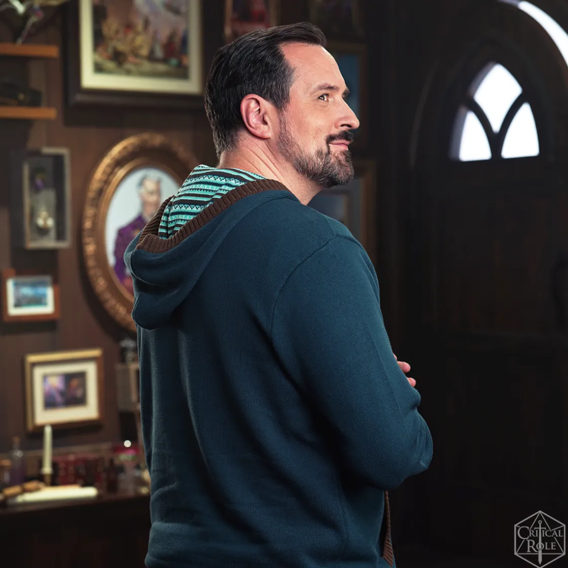 Inspired by the rustic woodworker, Chetney Pock O’Pea, this casually cozy pullover hoodie features a large front kangaroo pocket and contrasting knit ribbed cuffs, hem, and collar that encloses with three wood textured buttons. The lining of the full hood has a knitted pattern inspired by Chetney’s signature hat.